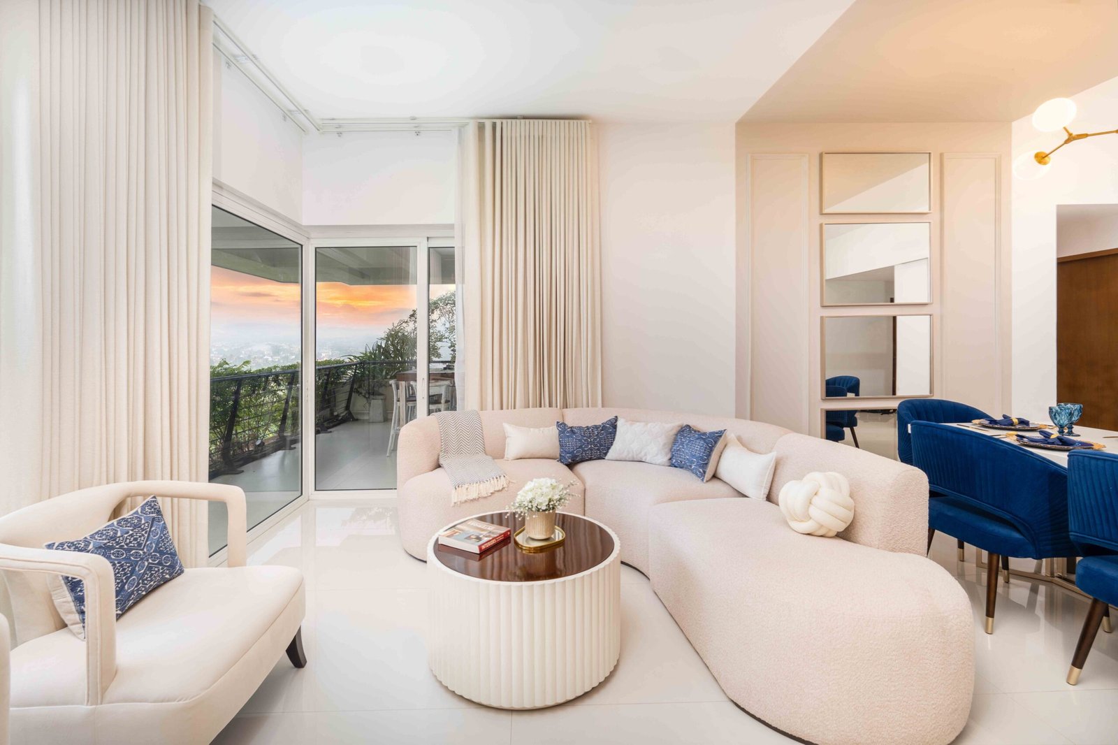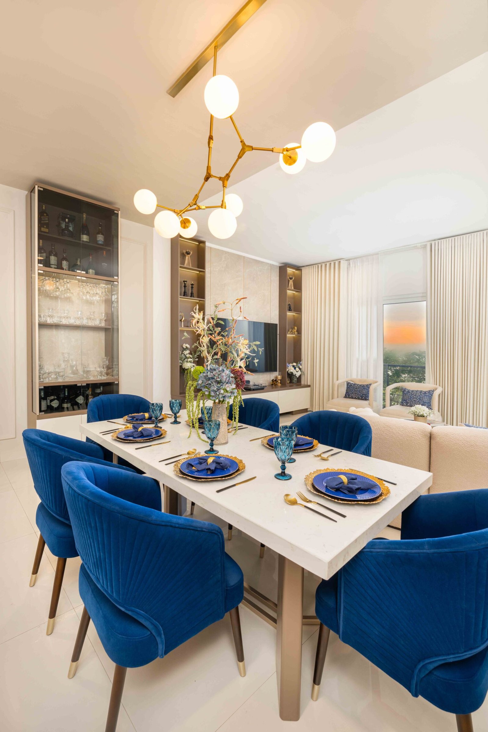 Welcome to a refined living experience at Clearpoint Apartments, where every detail is designed for luxury and tranquility. From the plush, sculptural seating to the bold contrast of deep blue and warm neutrals, this interior transformation by Interiors by Tharuka is a perfect blend of sophistication and comfort.