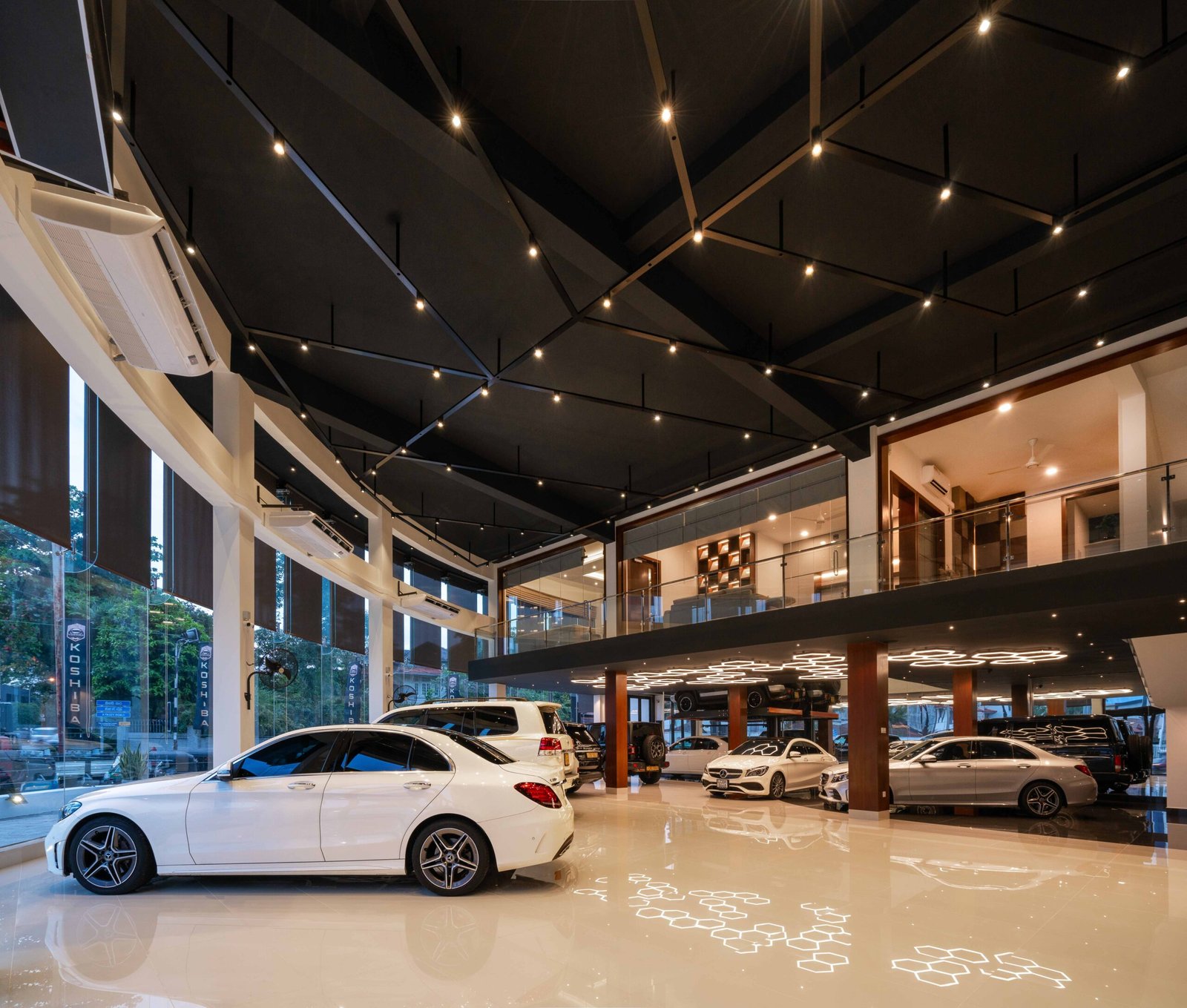 Every corner, from the illuminated car bays to the glass-panelled mezzanine lounge, was designed to reflect the showroom’s premium identity and offer clients an immersive and aspirational environment.