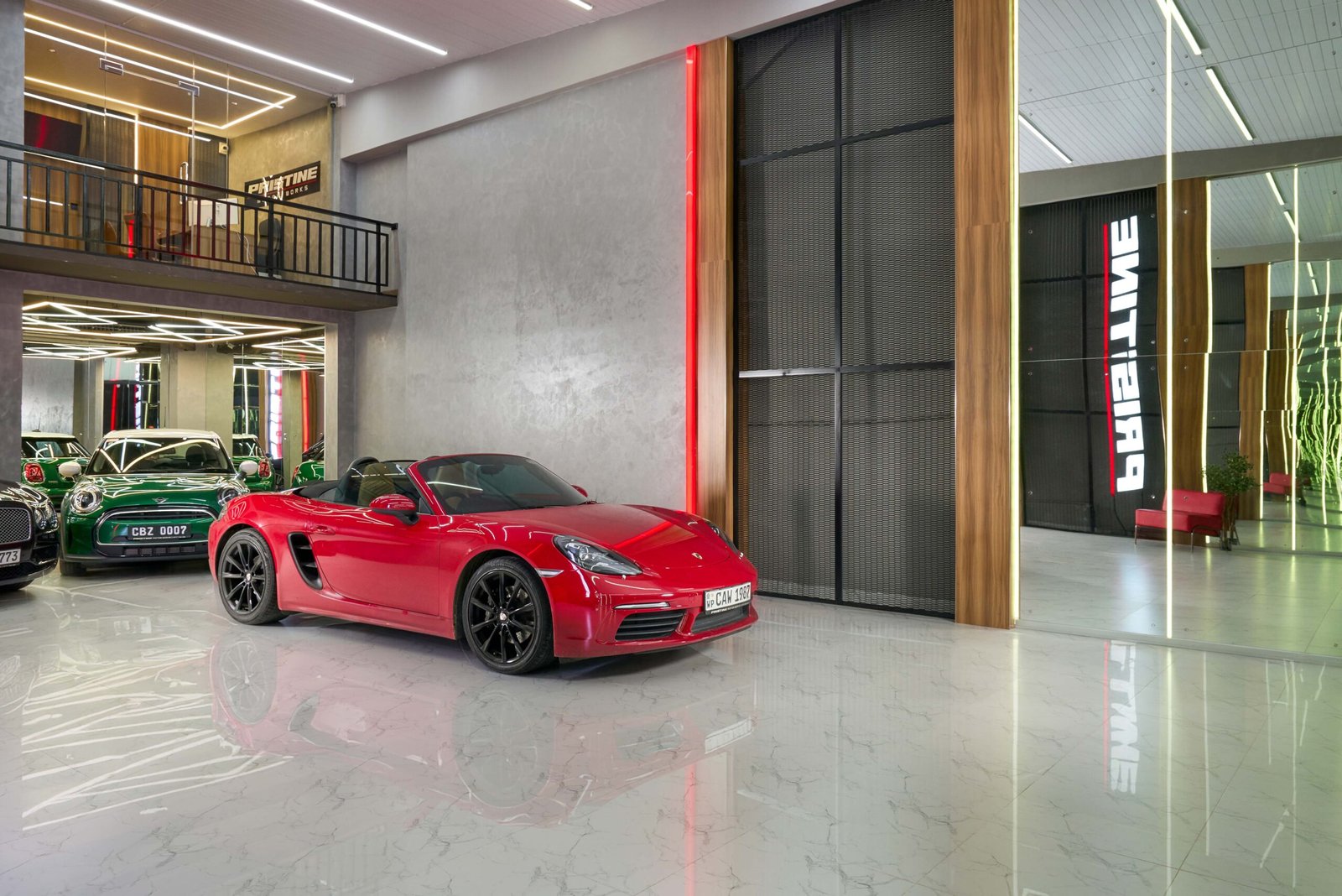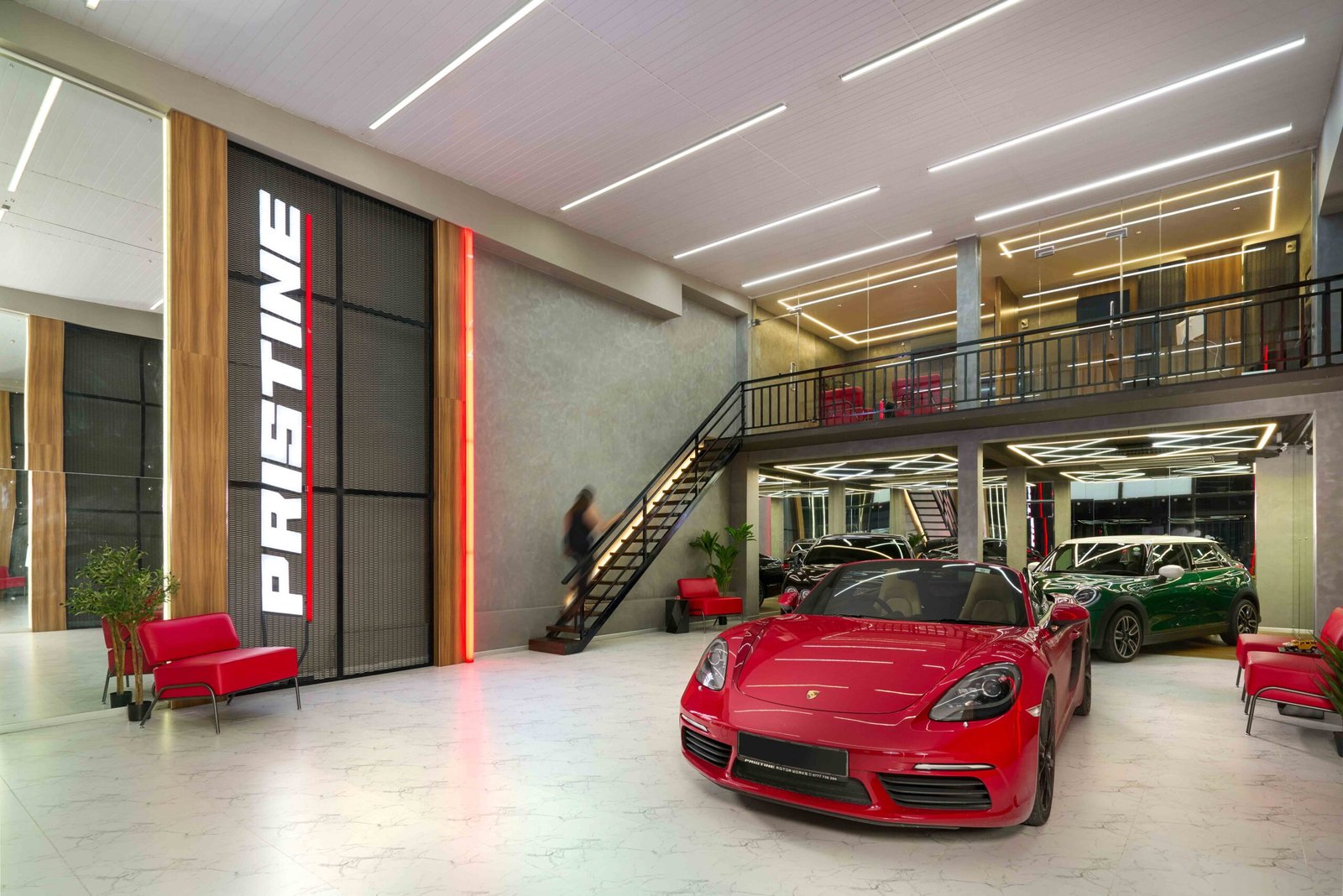 The illuminated PRISTINE feature wall, curated model-car displays and refined office spaces elevate the brand experience from the moment you step inside, turning the showroom into a destination of style, performance and identity.